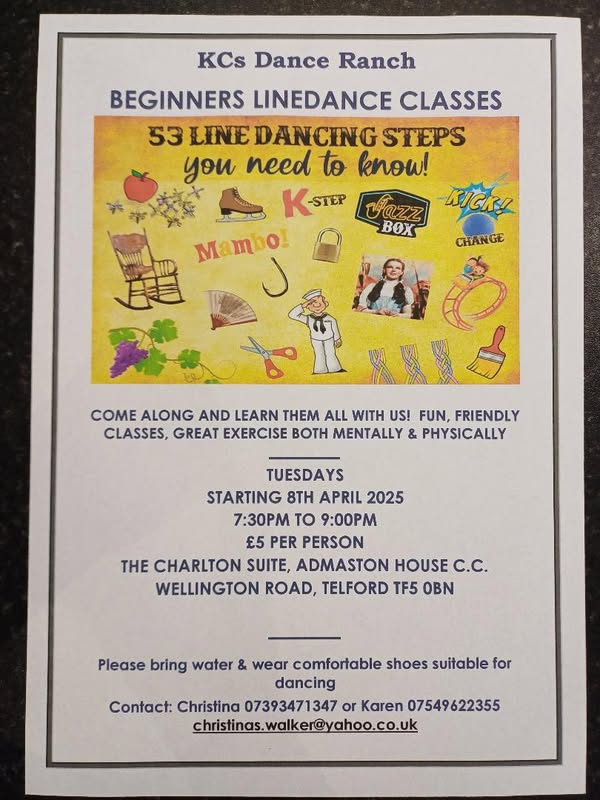 Lawley Line Dancers: 07359 769768 or email: contactus@lawleylinedancers.uk |