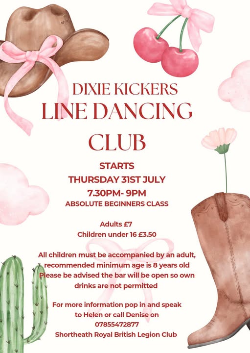 | Thursday (eve) | Walsall - Short Heath Royal British Legion Club, 11 Church Road, Willenhall, Walsall WV12 5PT. Starts at 7:30 PM - 9:00 PM (**BRAND NEW ABSOLUTE BEGINNERS CLASS STARTED 31ST JULY 2025**). Admission £7 (children under 16: £3.50). Please click here to download a flyer for details of this class.. | Dixiekickers (Denise or Helen): 07855 472877 |